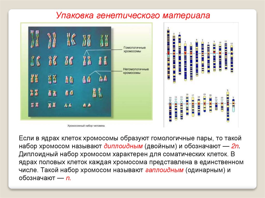 Упаковка генетического материалаЕсли в ядрах клеток хромосомы образуют гомологичные пары, то такой