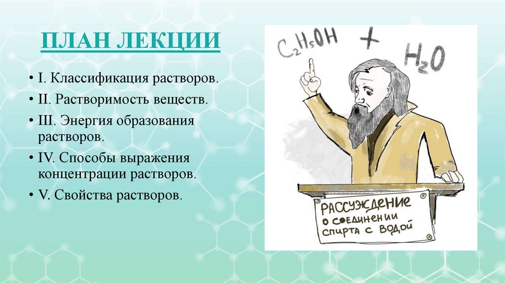 ПЛАН ЛЕКЦИИ• I. Классификация растворов.