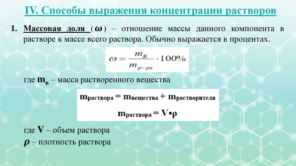 IV. Способы выражения концентрации растворов1. Массовая доля (
