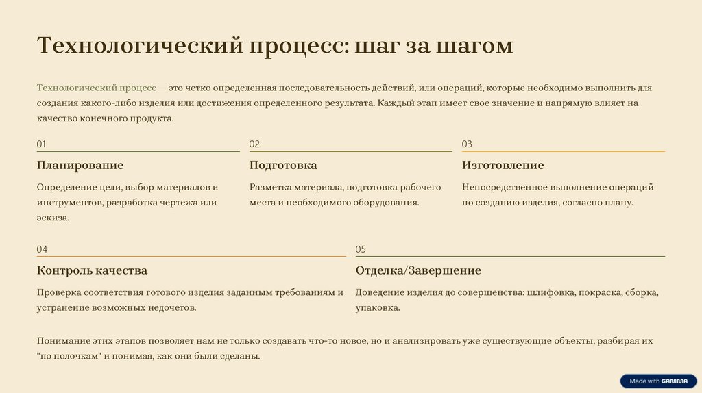 Технологический процесс: шаг за шагомТехнологический процесс — это четко определенная последовательность действий, или операций, которые необходимо выполнить для