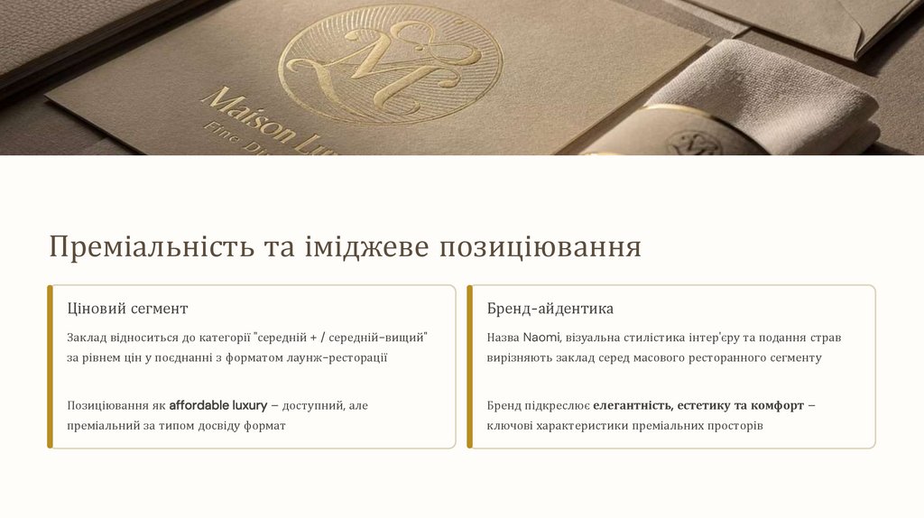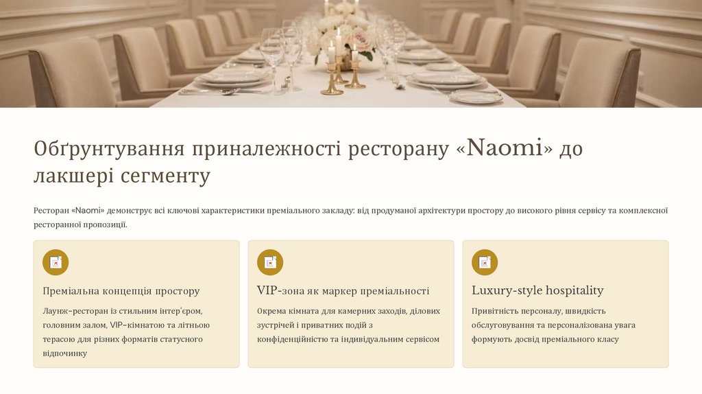 Обґрунтування приналежності ресторану «Naomi» долакшері сегменту
