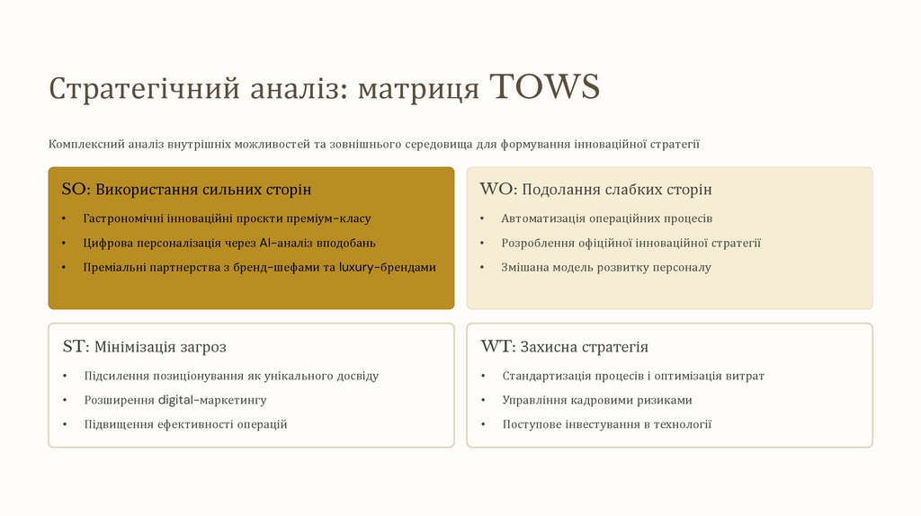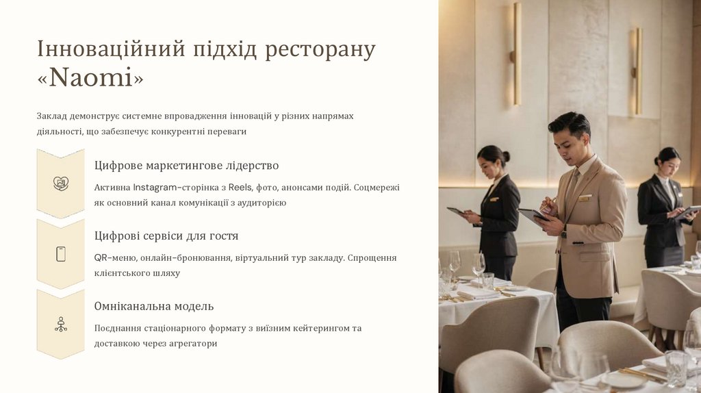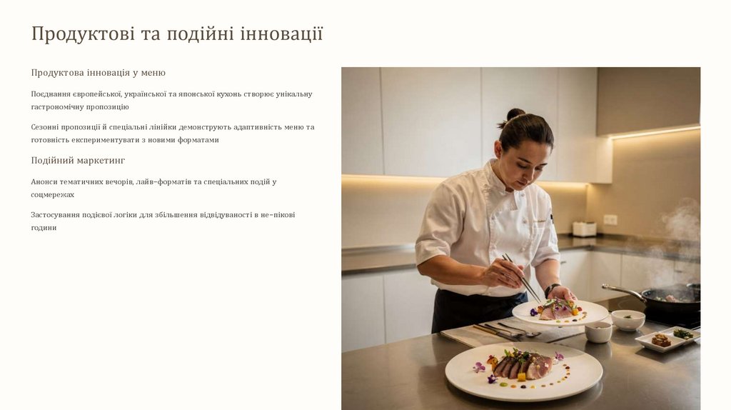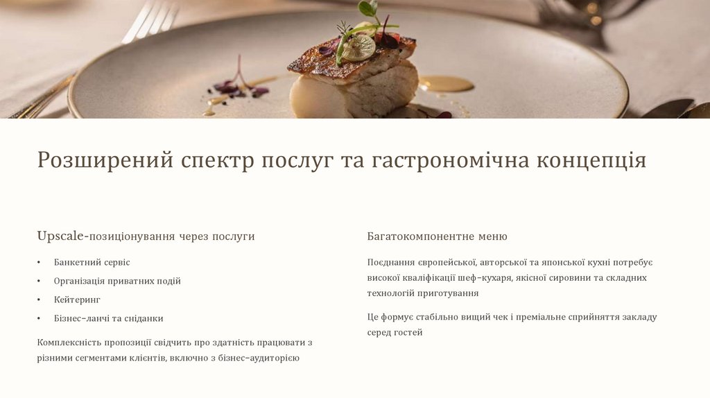 Розширений спектр послуг та гастрономічна концепціяUpscale-позиціонування через послуги