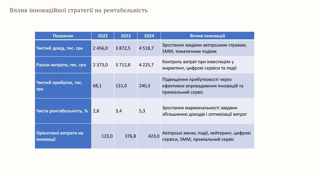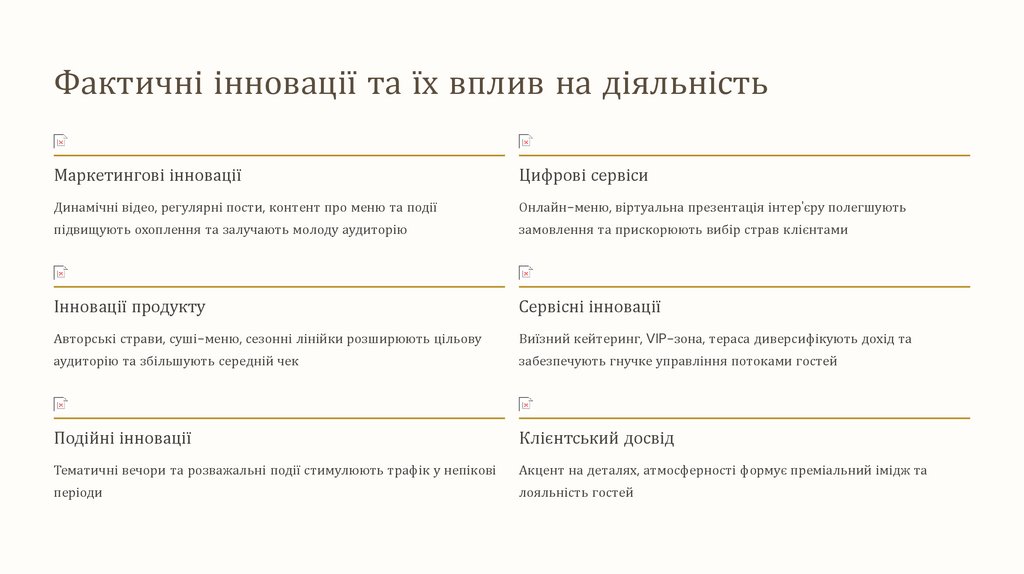 Фактичні інновації та їх вплив на діяльністьМаркетингові інновації