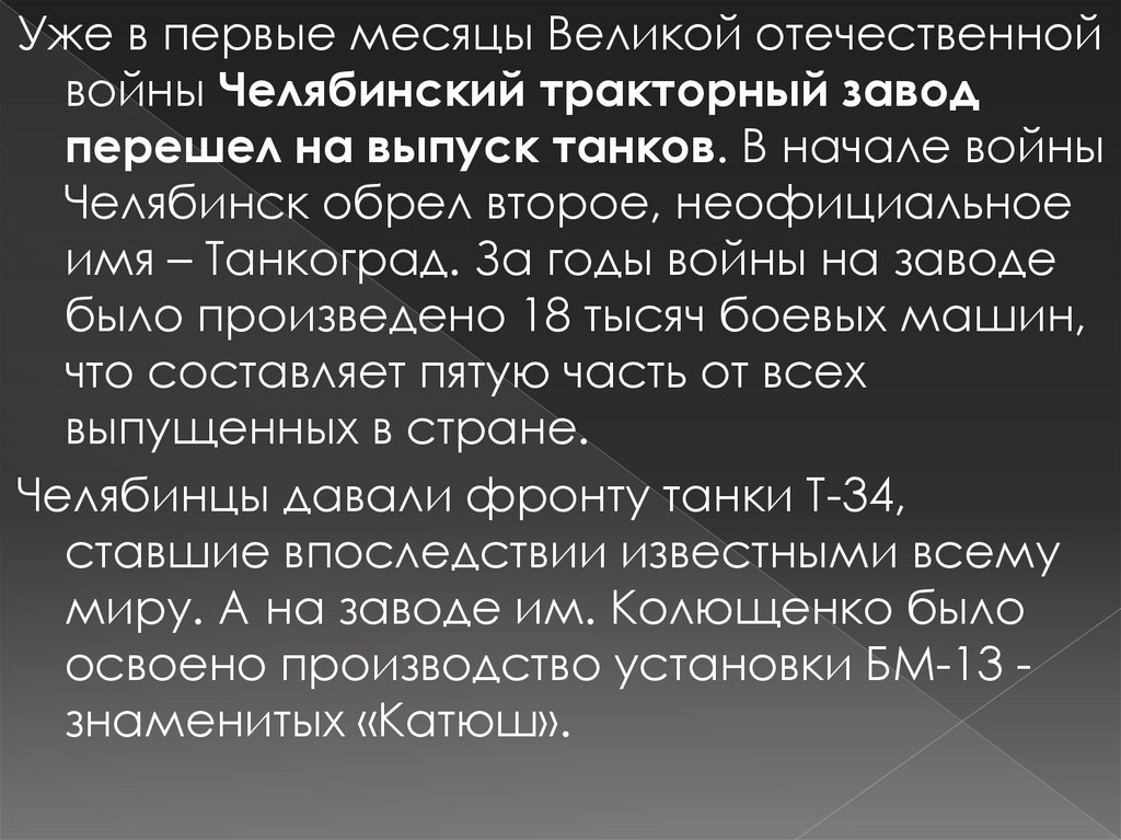 Уже в первые месяцы Великой отечественнойвойны Челябинский тракторный завод