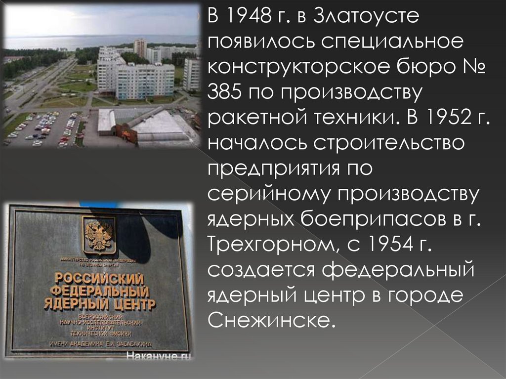 С конца 1940-х годов на Южном Ураленачалось создание Государственного