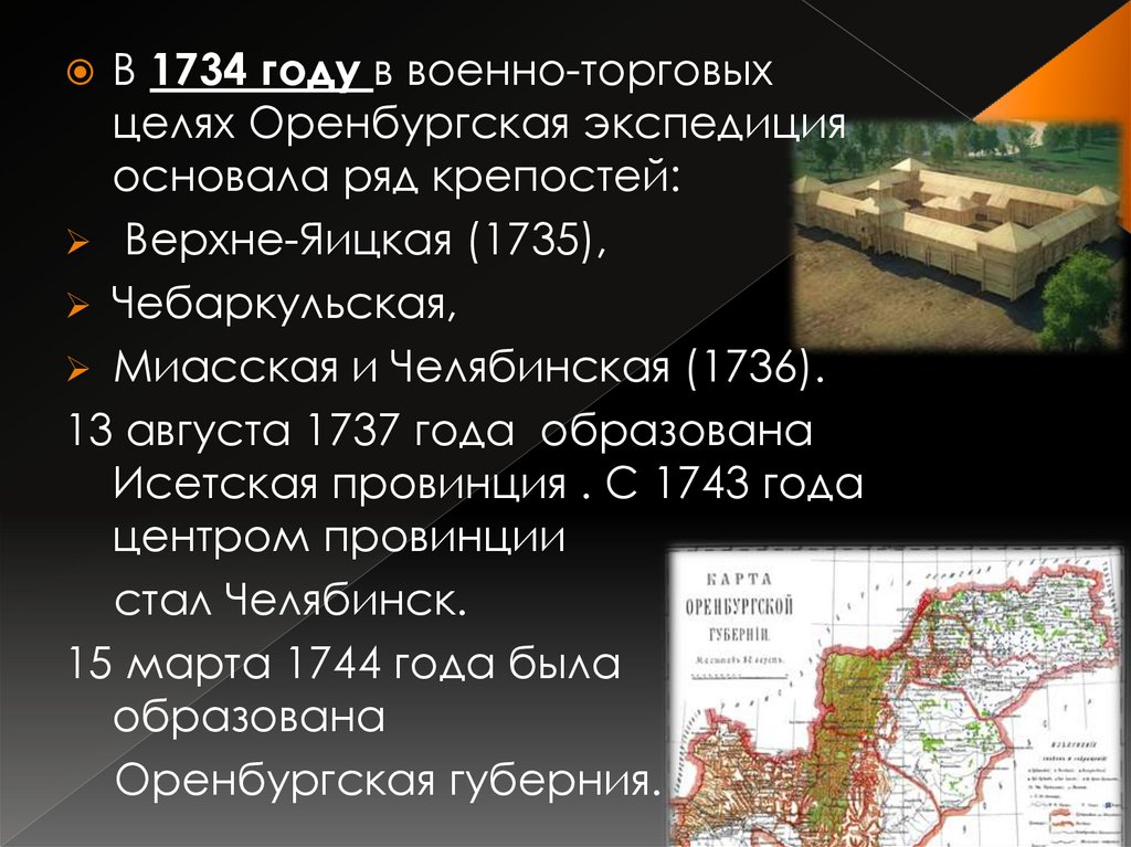 В 1734 году в военно-торговыхцелях Оренбургская экспедиция