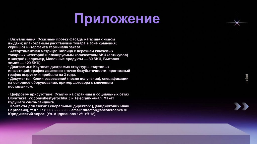 Сергеевич], тел.: +7 (966) 666 66 66, email: director@shesterochka.ru.