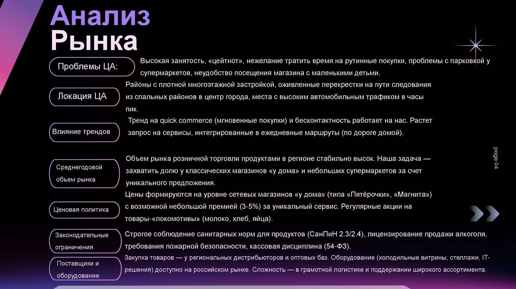 повседневных покупок. Целевой потребитель — активные люди 25-50 лет, семьи с детьми, автовладельцы, жители в