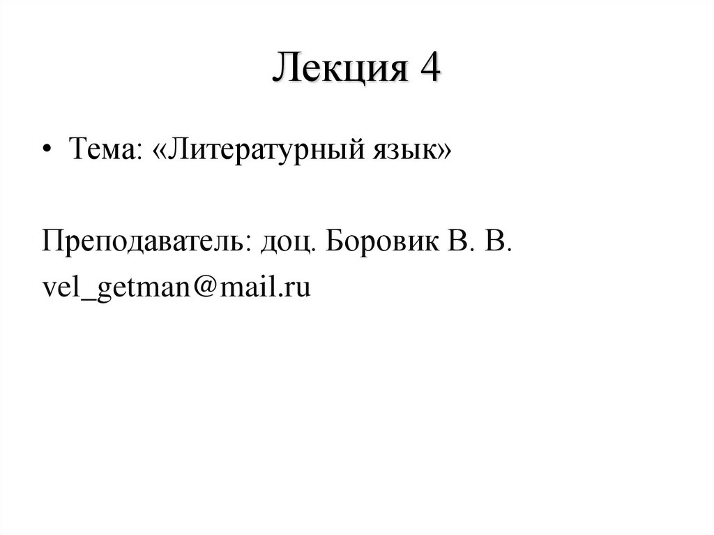 • Тема: «Литературный язык»Преподаватель: доц. Боровик В. В.