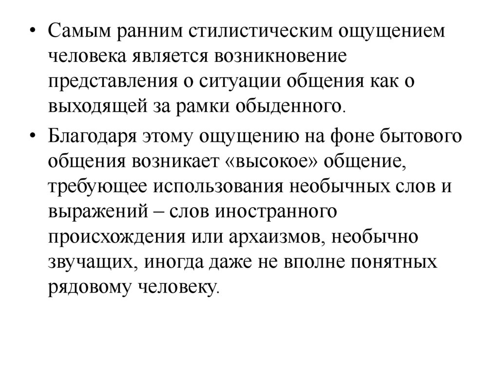 • Самым ранним стилистическим ощущениемчеловека является возникновение