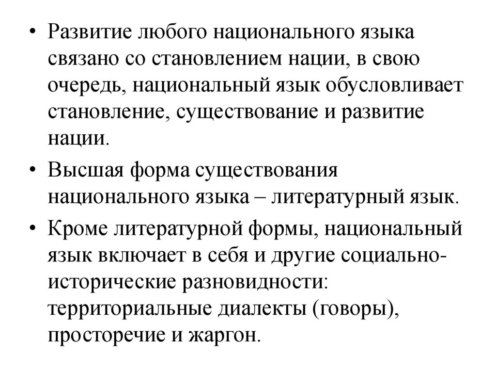 • Развитие любого национального языкасвязано со становлением нации, в свою