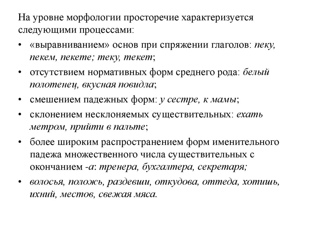На уровне морфологии просторечие характеризуетсяследующими процессами: