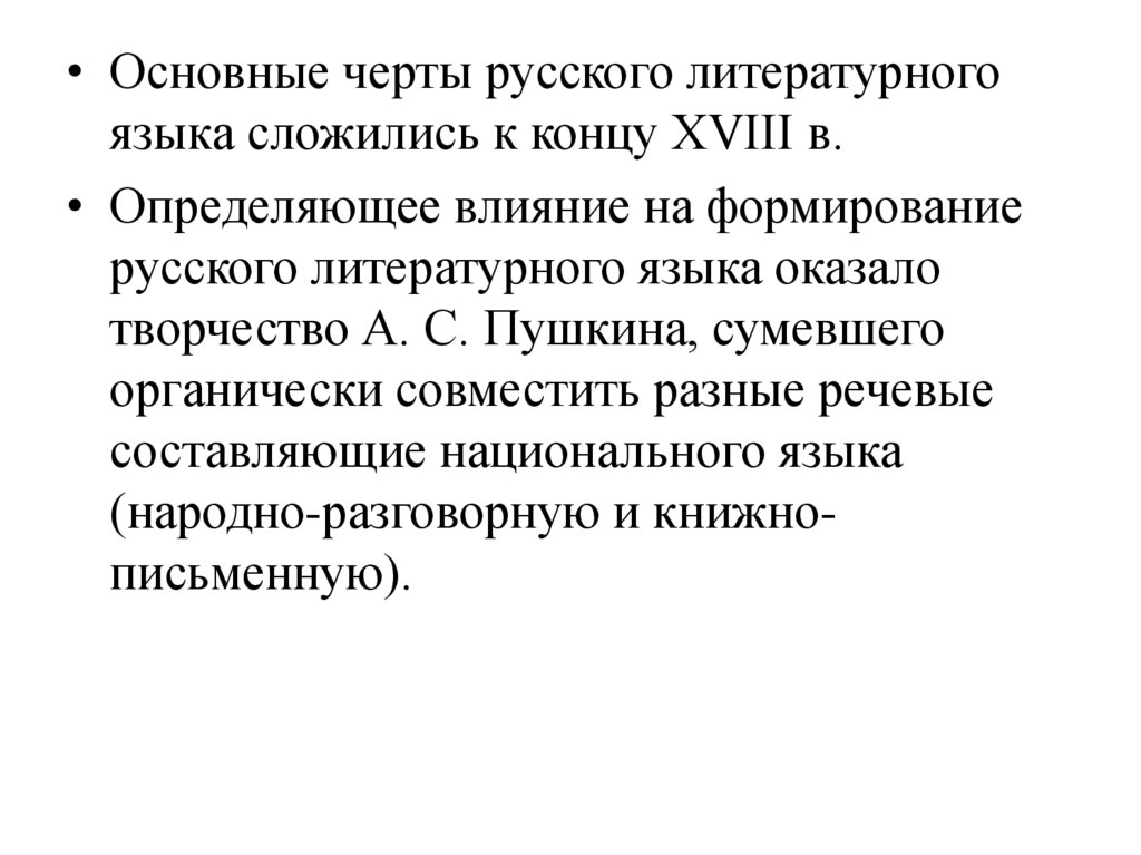 • Основные черты русского литературногоязыка сложились к концу XVIII в.