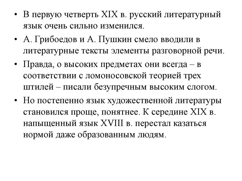 • В первую четверть XIX в. русский литературныйязык очень сильно изменился.