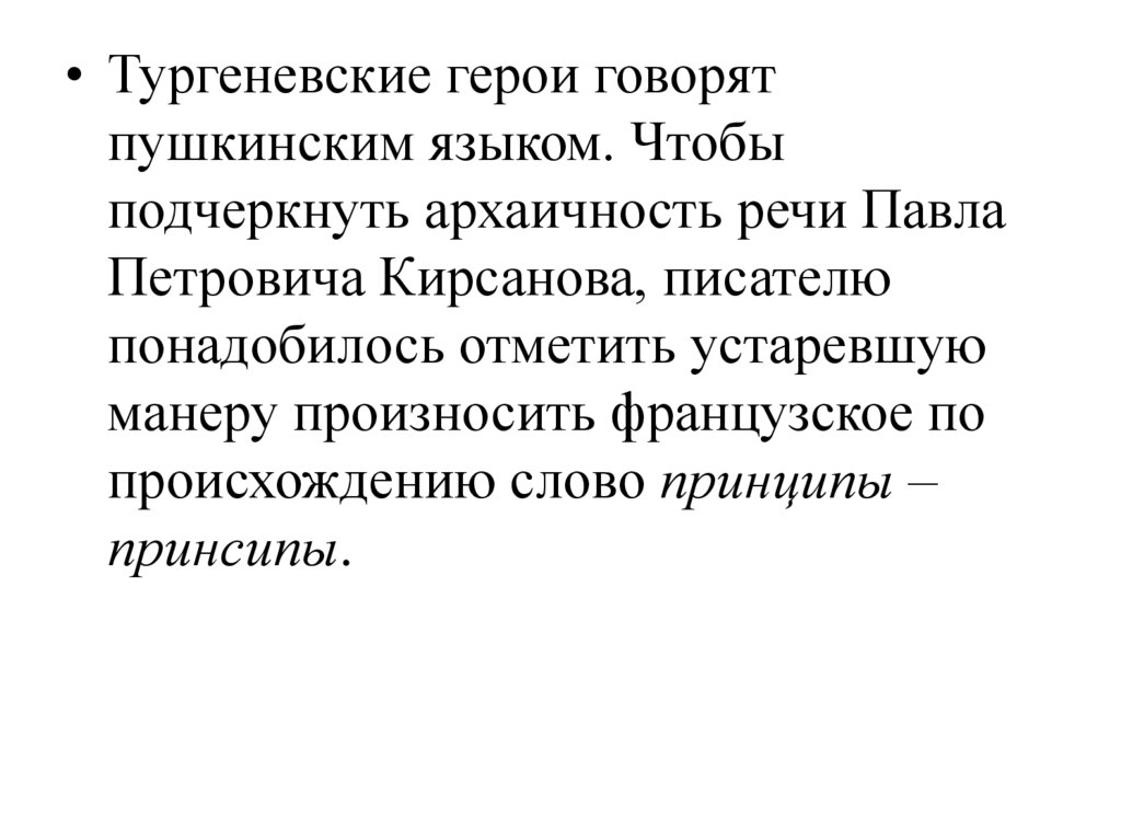 • Тургеневские герои говорятпушкинским языком. Чтобы
