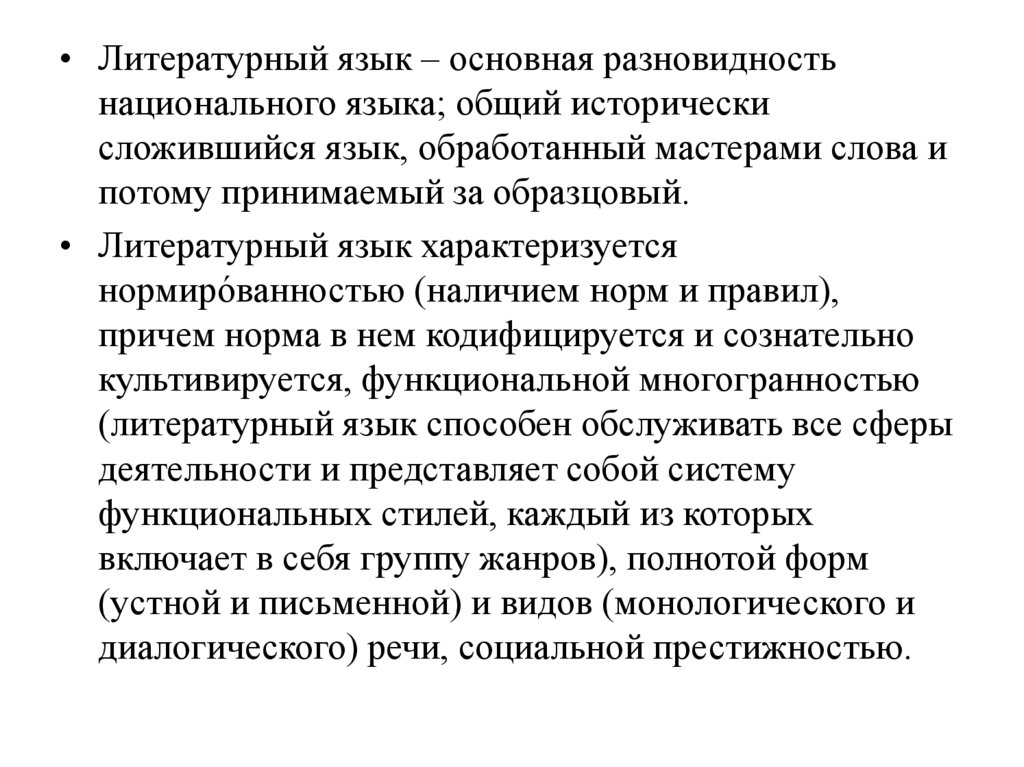 • Что такое литературный язык и чем он отличается от других формнационального языка?