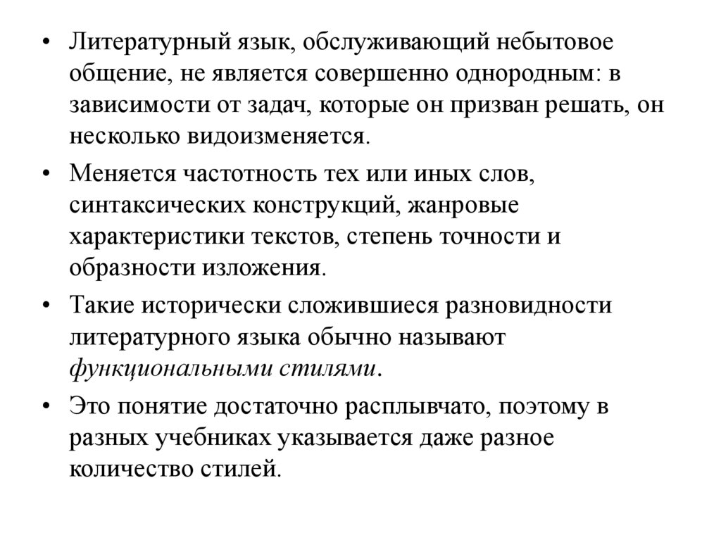 • Литературный язык, обслуживающий небытовоеобщение, не является совершенно однородным: в