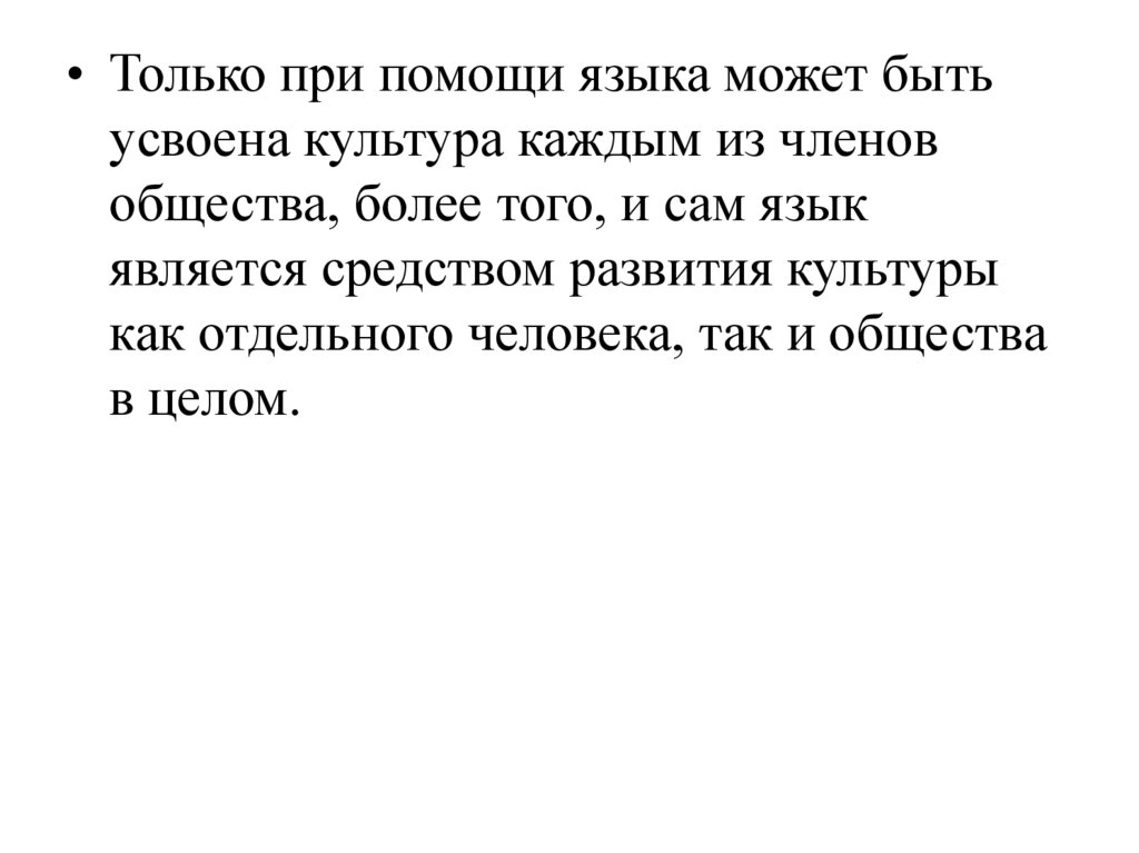 • Только при помощи языка может бытьусвоена культура каждым из членов