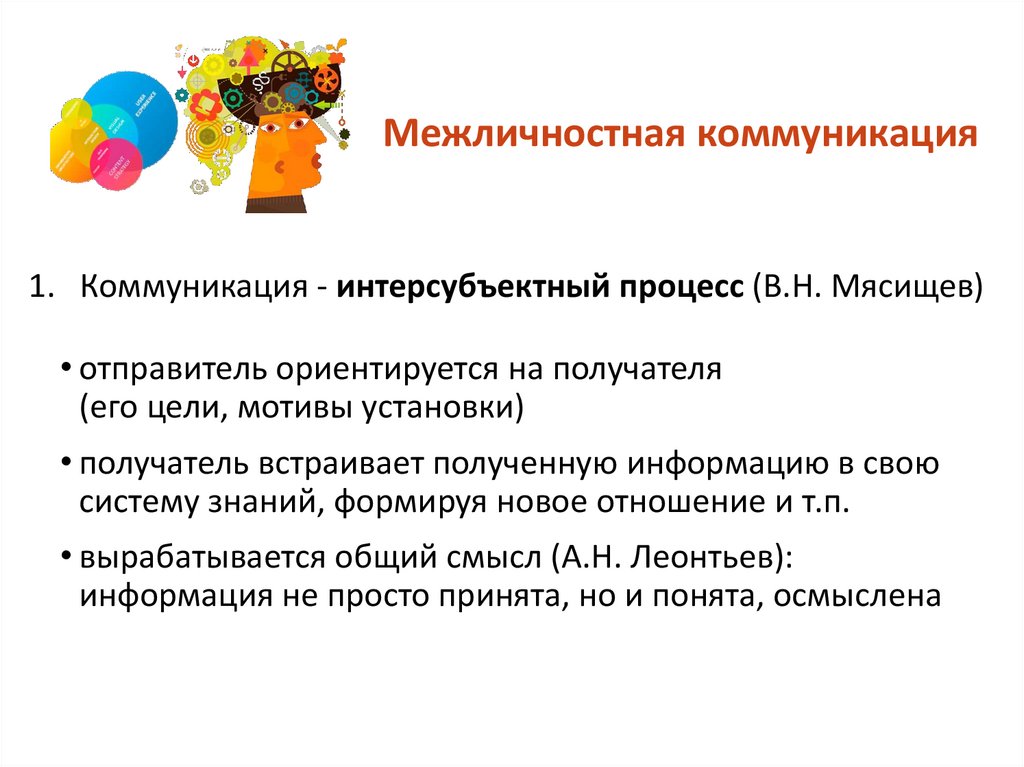 Межличностная коммуникация1. Коммуникация - интерсубъектный процесс (В.Н. Мясищев)
