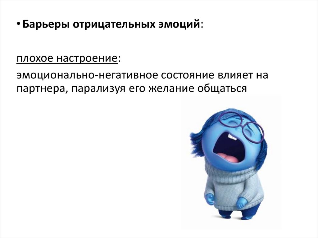 • Барьеры отрицательных эмоций:плохое настроение: