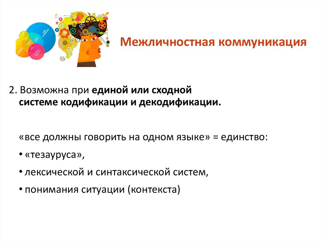 Межличностная коммуникация2. Возможна при единой или сходной