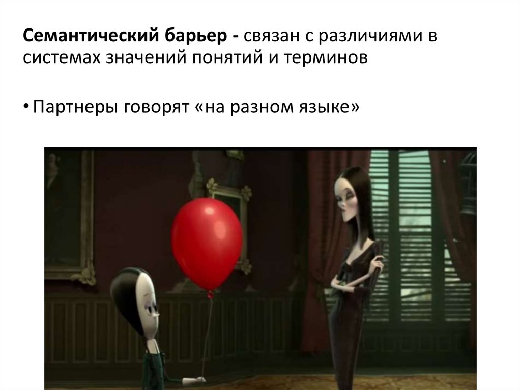 Семантический барьер - связан с различиями всистемах значений понятий и терминов