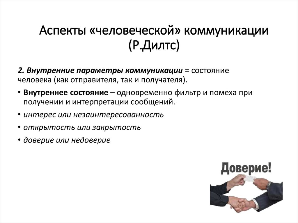 Аспекты «человеческой» коммуникации(Р.Дилтс)