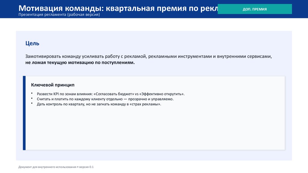 Мотивация команды: квартальная премия по рекламеДОП. ПРЕМИЯ