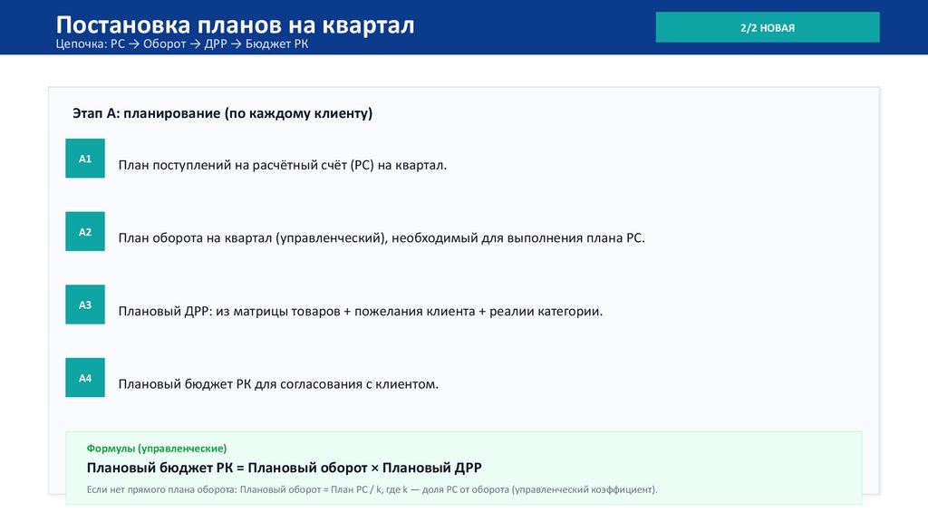 1) Подготовка (1–2 недели): шаблон план/факт, поля данных, ответственные, допуск по ДРР.