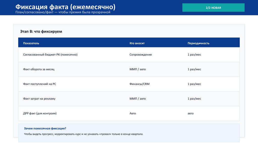 3) Ежемесячные контроль‑точки: план/согласовано/факт, разбор кейсов и исключений.