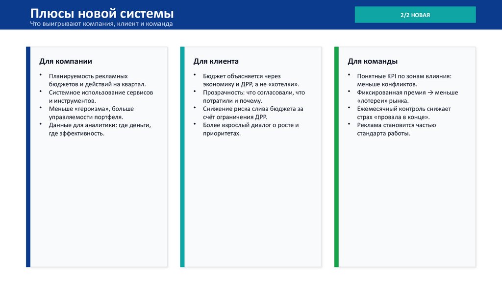 Продуктовый подход: пакеты услуг (SEO+Ads), SLA результата, бонус за удержание/рост LTV.