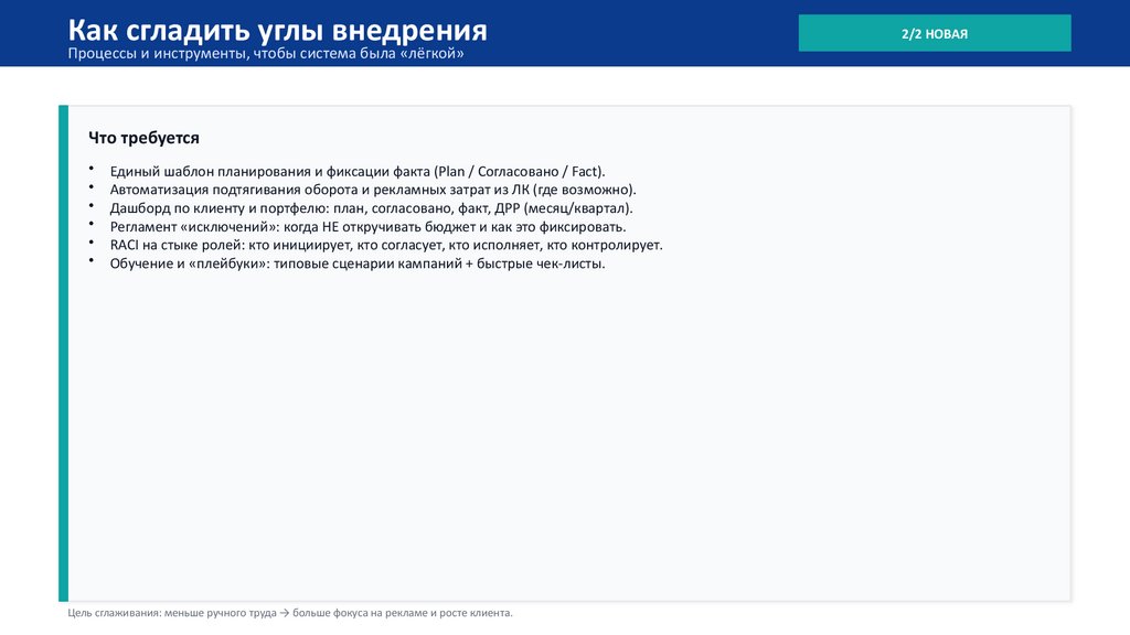 Цель сглаживания: меньше ручного труда → больше фокуса на рекламе и росте клиента.