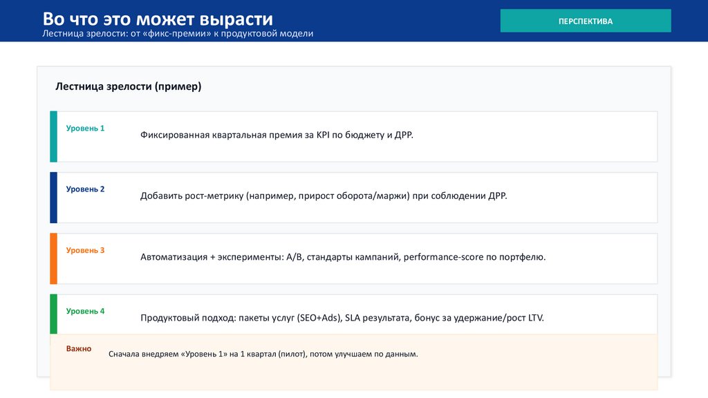 Во что это может вырастиЛестница зрелости: от «фикс‑премии» к продуктовой модели