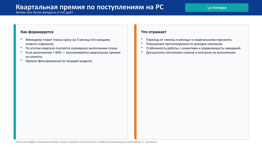 Квартальная премия расширяет горизонт планирования и повышает прогнозируемость.