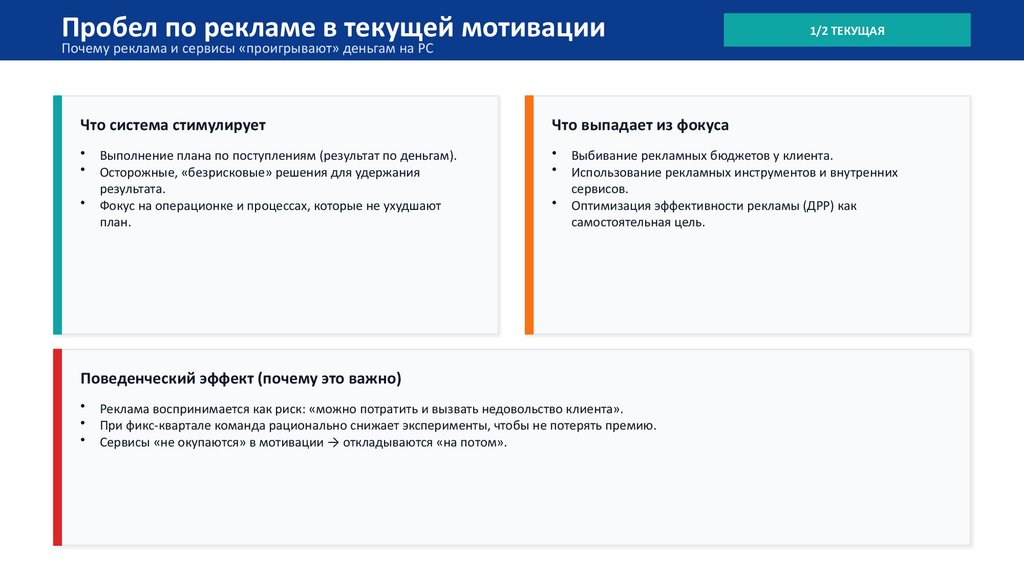 Текущая мотивация (как есть)1/2 ТЕКУЩАЯ