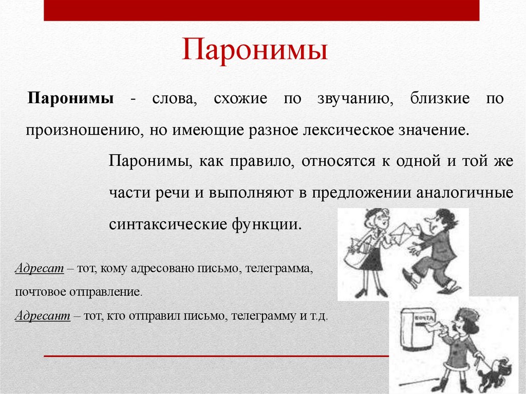ПаронимыПаронимы - слова, схожие по звучанию, близкие по