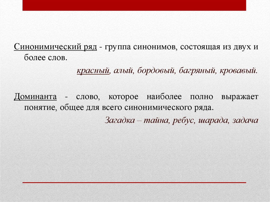 Синонимический ряд - группа синонимов, состоящая из двух иболее слов.