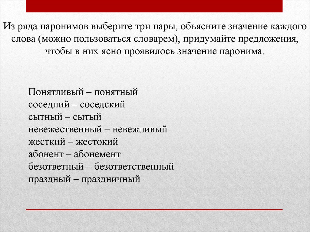 чтобы в них ясно проявилось значение паронима.