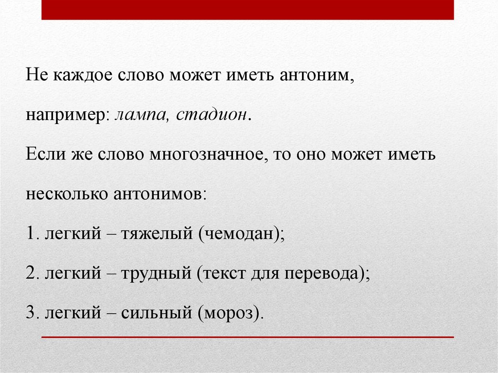Не каждое слово может иметь антоним,например: лампа, стадион.