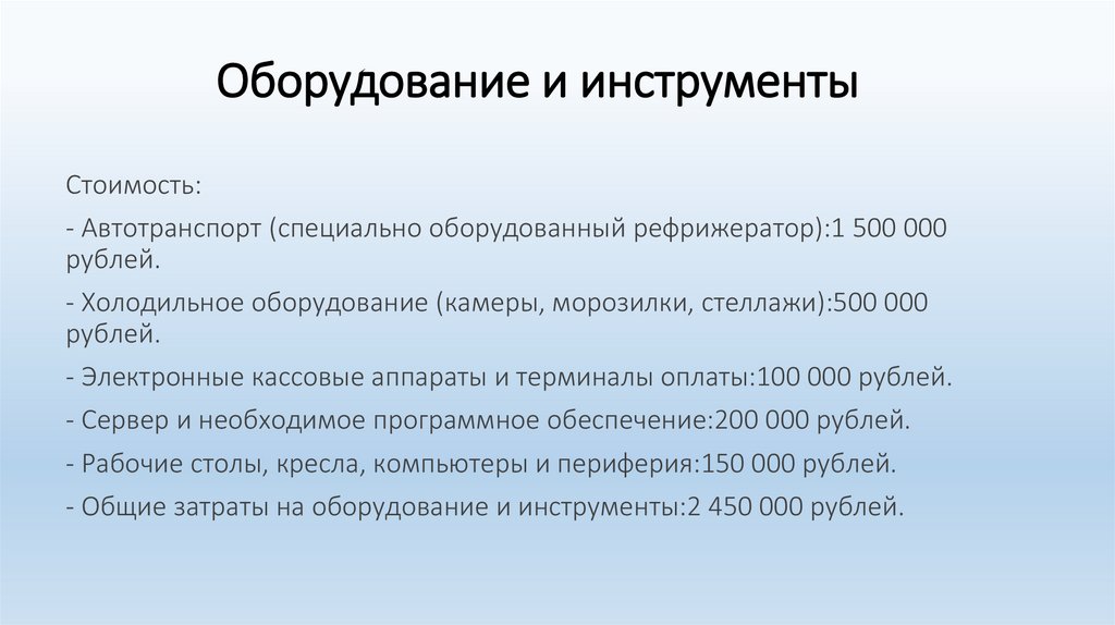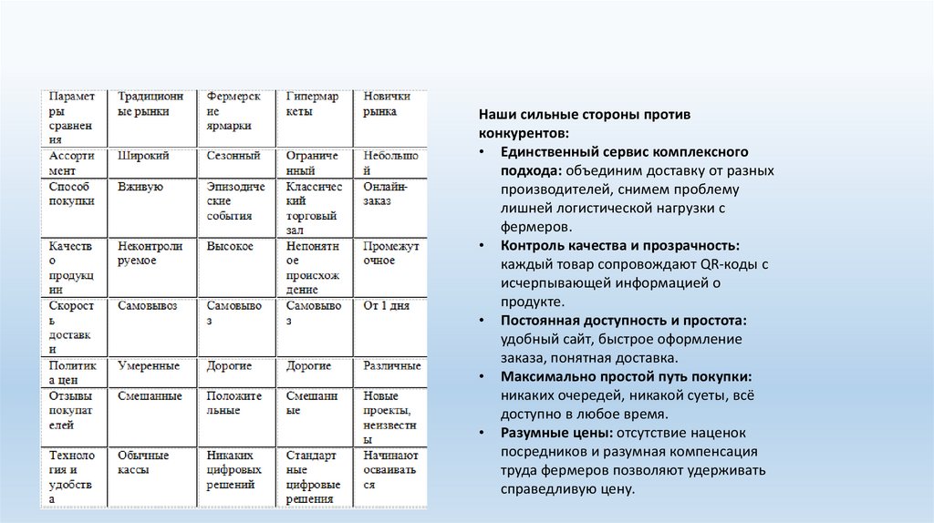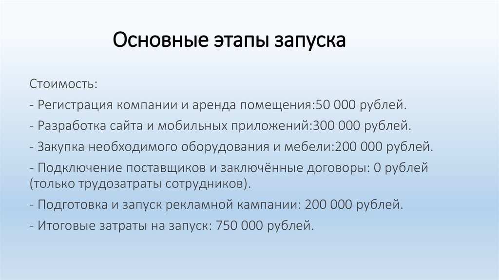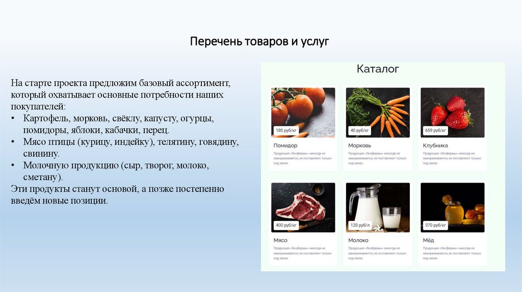 Перечень товаров и услугНа старте проекта предложим базовый ассортимент,
