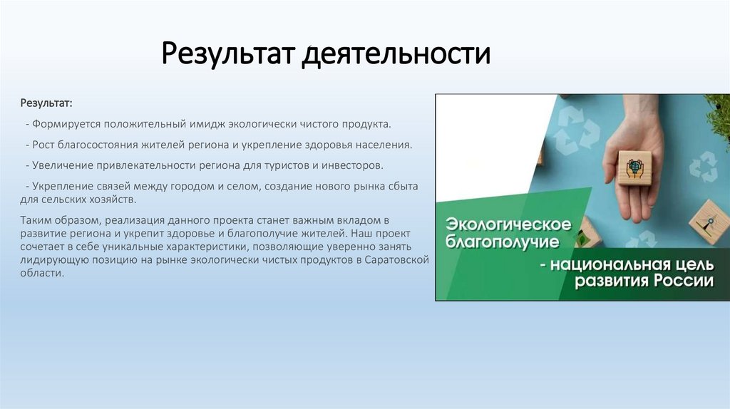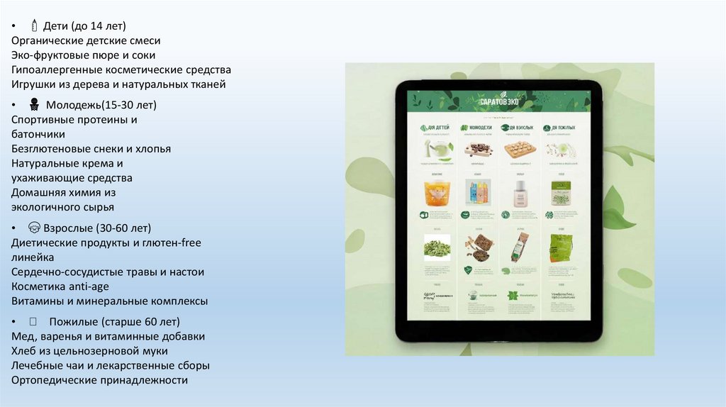 Задача: Повышать доступность и популярность экологически чистой продукции среди жителей Саратова и области.
