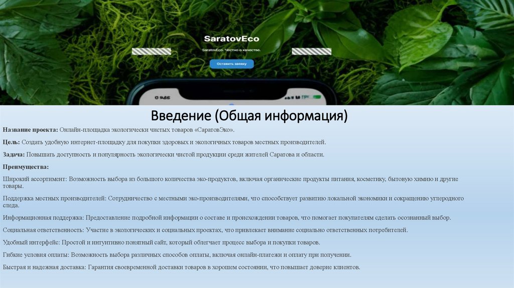 Введение (Общая информация)Название проекта: Онлайн-площадка экологически чистых товаров «СаратовЭко».
