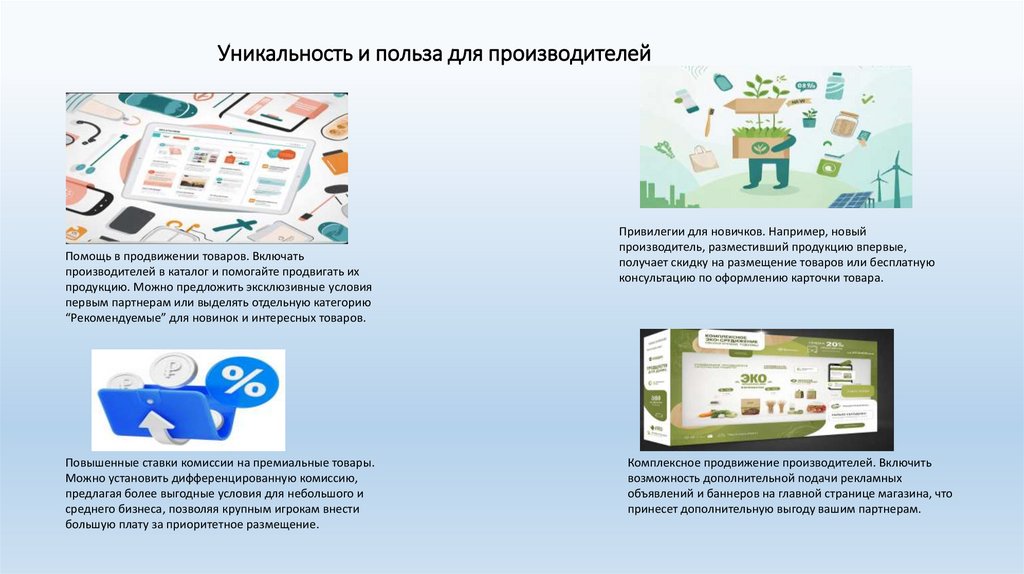 Широкий ассортимент: Возможность выбора из большого количества эко-продуктов, включая органические продукты питания, косметику, бытовую химию и другие