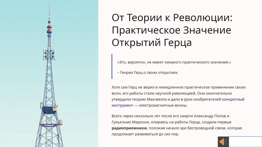 Хотя сам Герц не верил в немедленное практическое применение своих