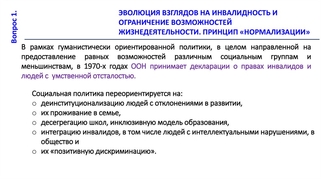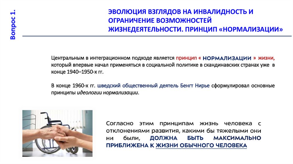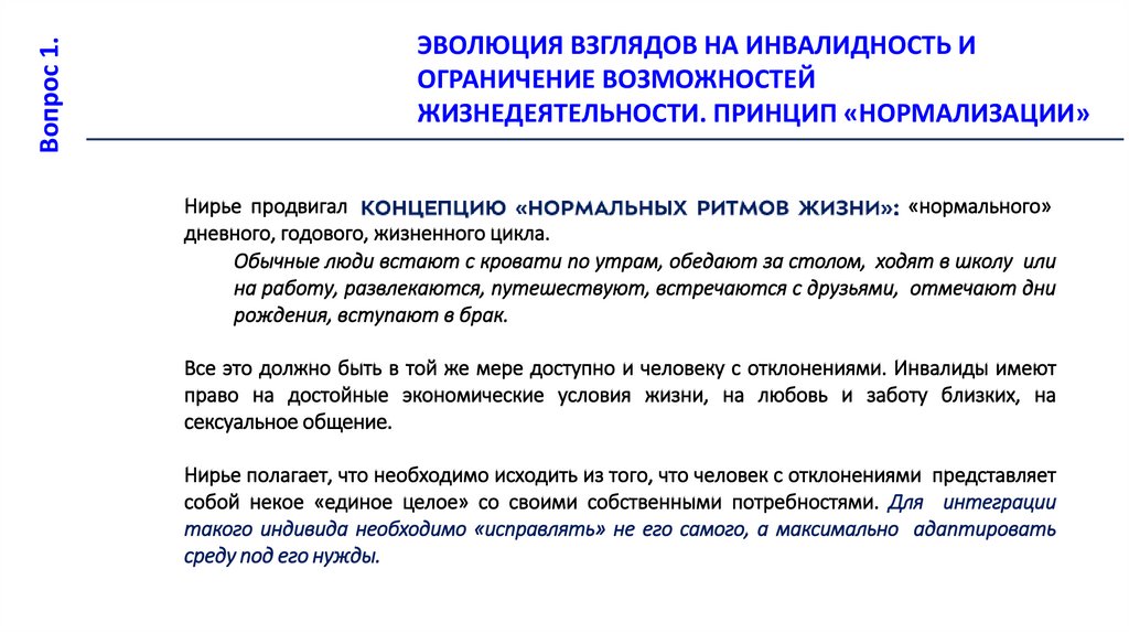 2. Эволюция взглядов на инвалидность и ограничение возможностей жизнедеятельности. Термин «нормализация».