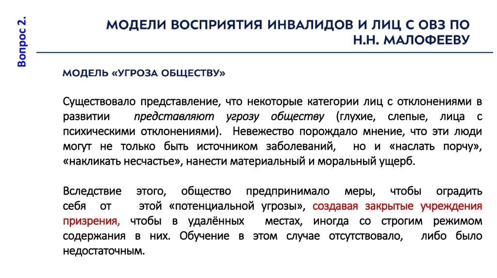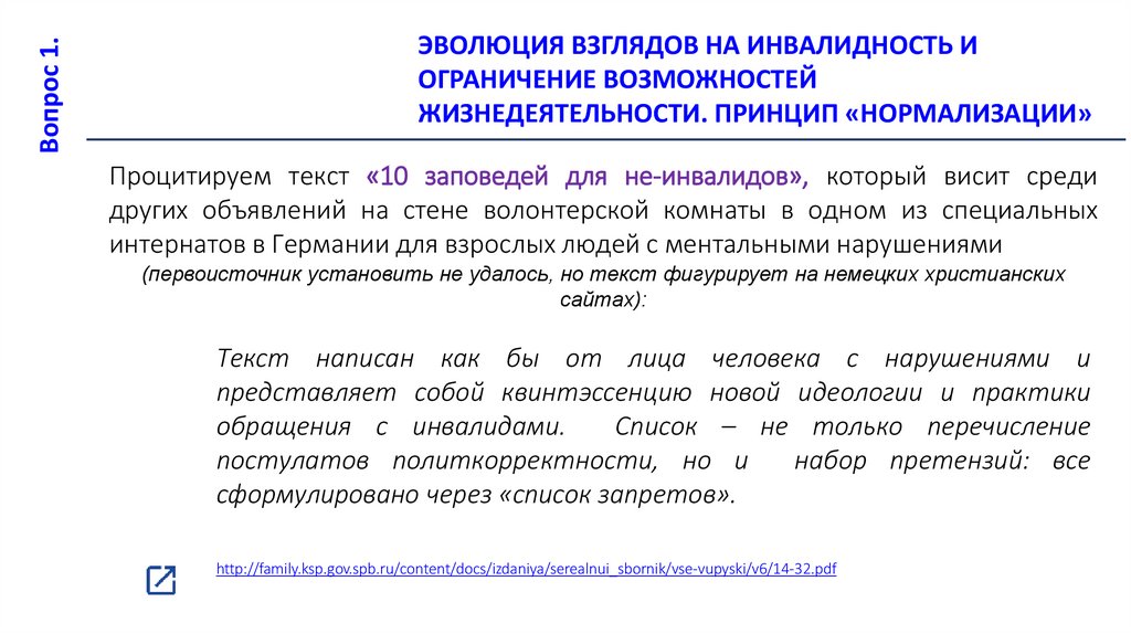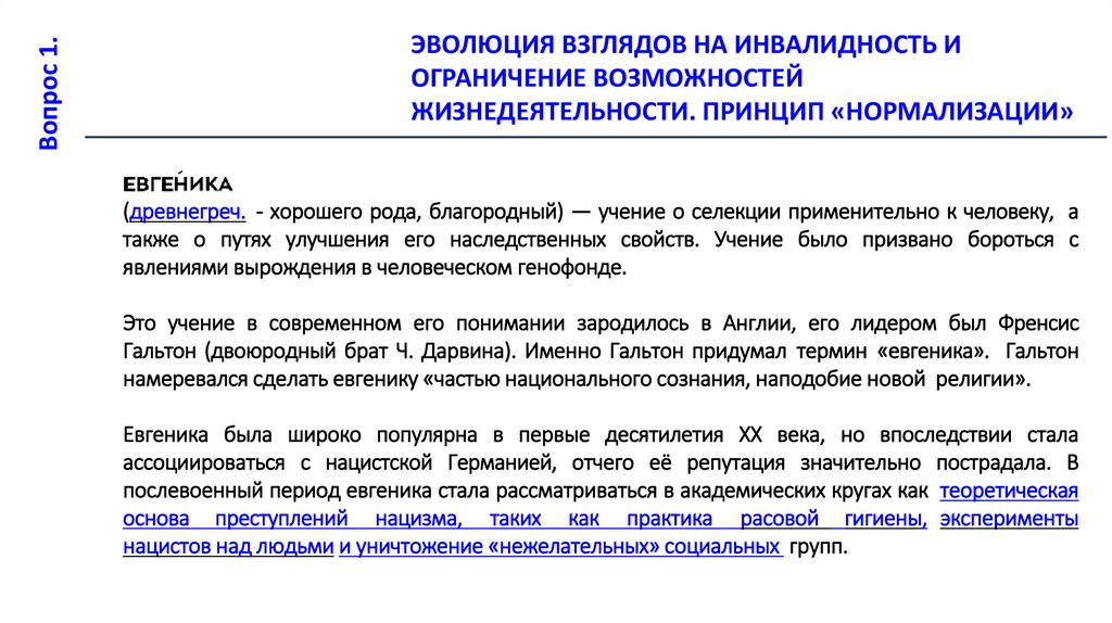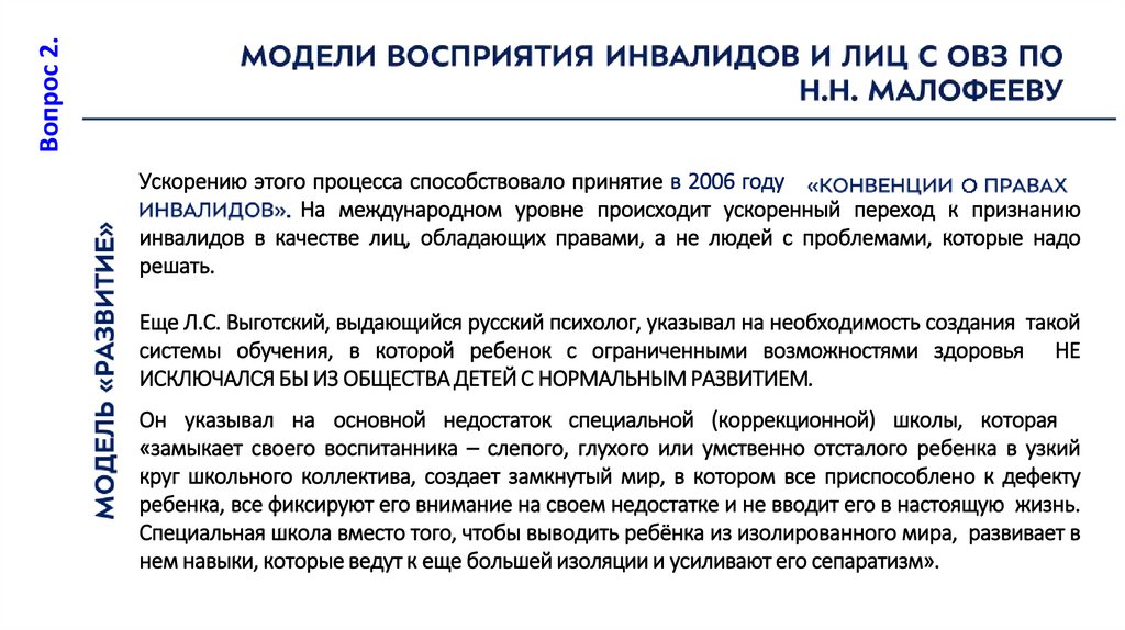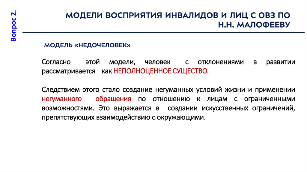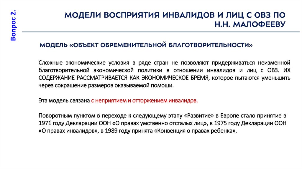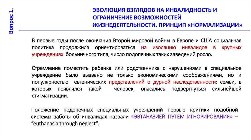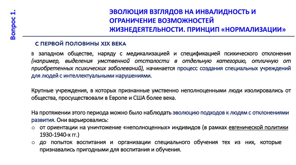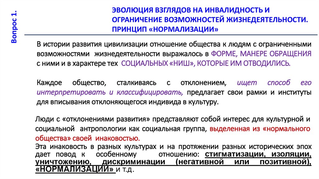 Вопрос 1.ЭВОЛЮЦИЯ ВЗГЛЯДОВ НА ИНВАЛИДНОСТЬ И