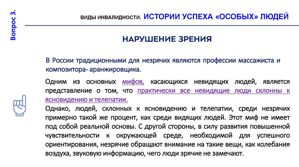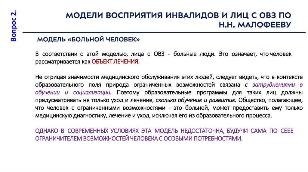 Модели восприятия инвалидов и лиц с ОВЗ по Н.Н. Малофееву.Виды инвалидности. Истории успеха «особых» людей.