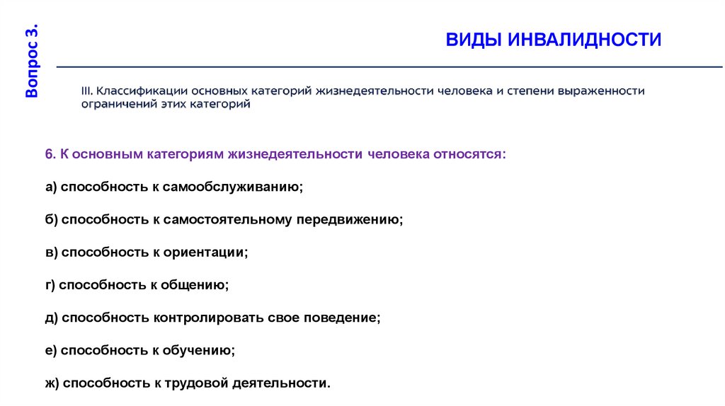 ОГРАНИЧЕНИЕ ВОЗМОЖНОСТЕЙ ЖИЗНЕДЕЯТЕЛЬНОСТИ.