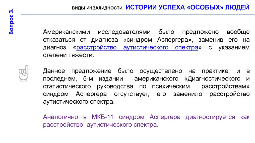 Аналогично в МКБ-11 синдром Аспергера диагностируется как