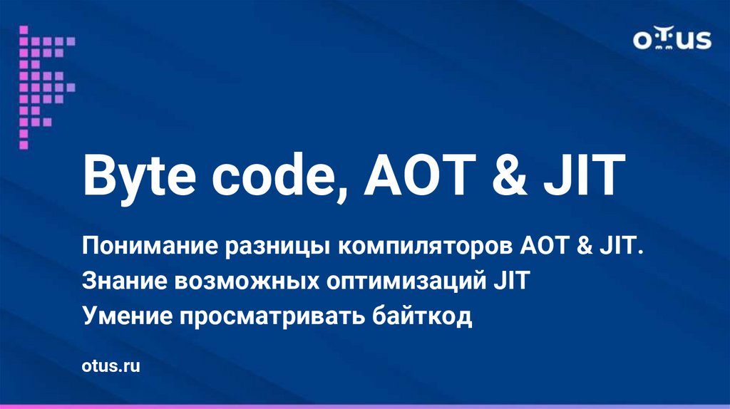 Byte code, AOT & JITПонимание разницы компиляторов AOT & JIT.